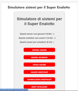 Sperimenta il tuo sistema di gioco, ottimizza le tue strategie e aumenta le tue probabilità di vincita con il nostro Simulatore di Lotto e Sestine. Perfetto per gli appassionati di lotto che vogliono perfezionare le loro abilità e divertirsi con le estrazioni simulate.